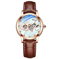 Chenxi 8832 orologio meccanico femminile verde di lusso bel cinturino in pelle resistente all'acqua display della data design dell'orologio per il tempo libero super sottile
